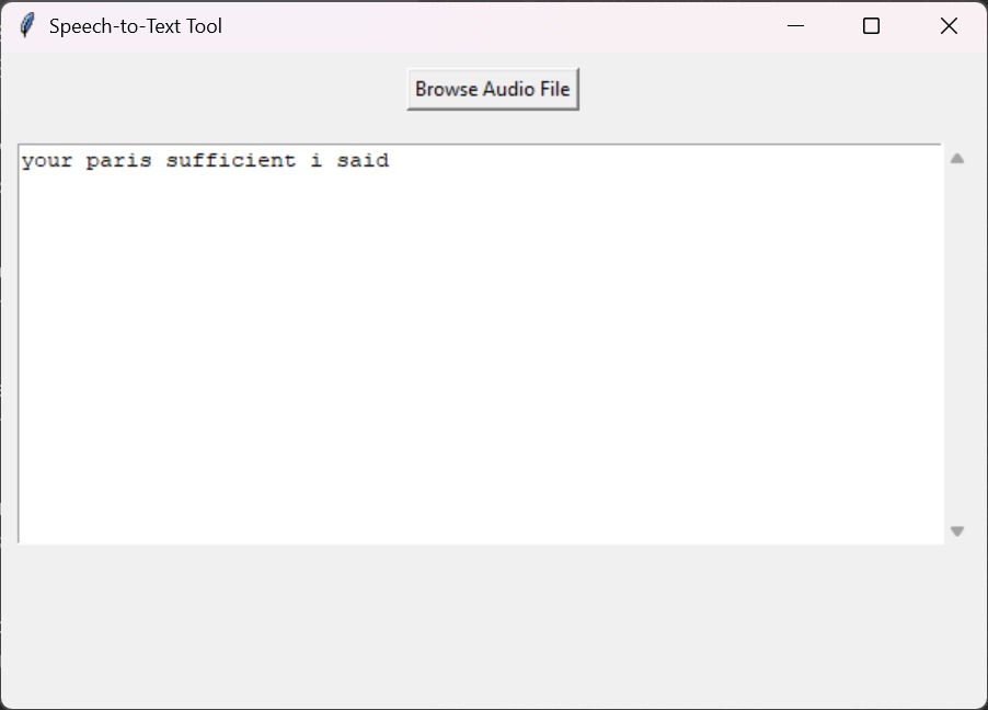- Tkinter GUI → Allows file browsing and running the transcription with a single click.